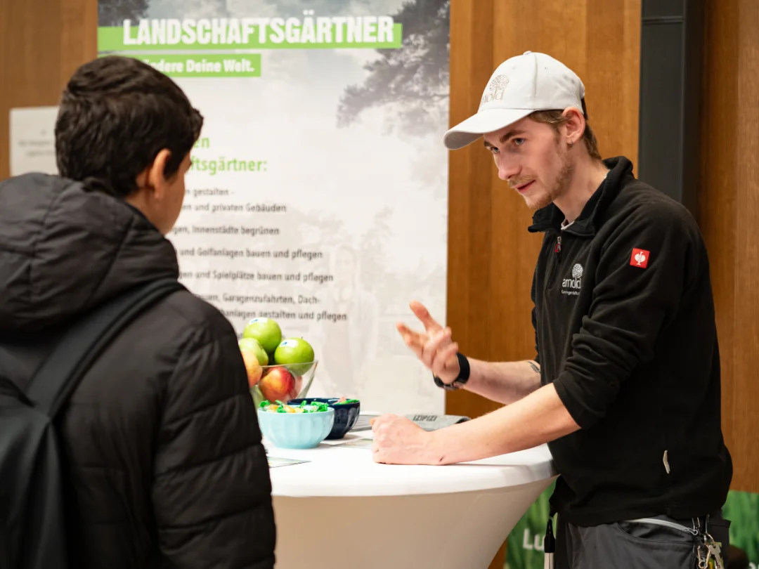 Am 21. Oktober 2025 waren wir mit einem eigenen Stand beim Berufsinformationstag in der Filderhalle in Leinfelden vertreten. Unsere engagierten Auszubildenden haben zahlreichen interessierten Schüler*innen den vielseitigen Beruf des Landschaftsgärtners praxisnah, authentisch und mit viel Begeisterung nähergebracht.